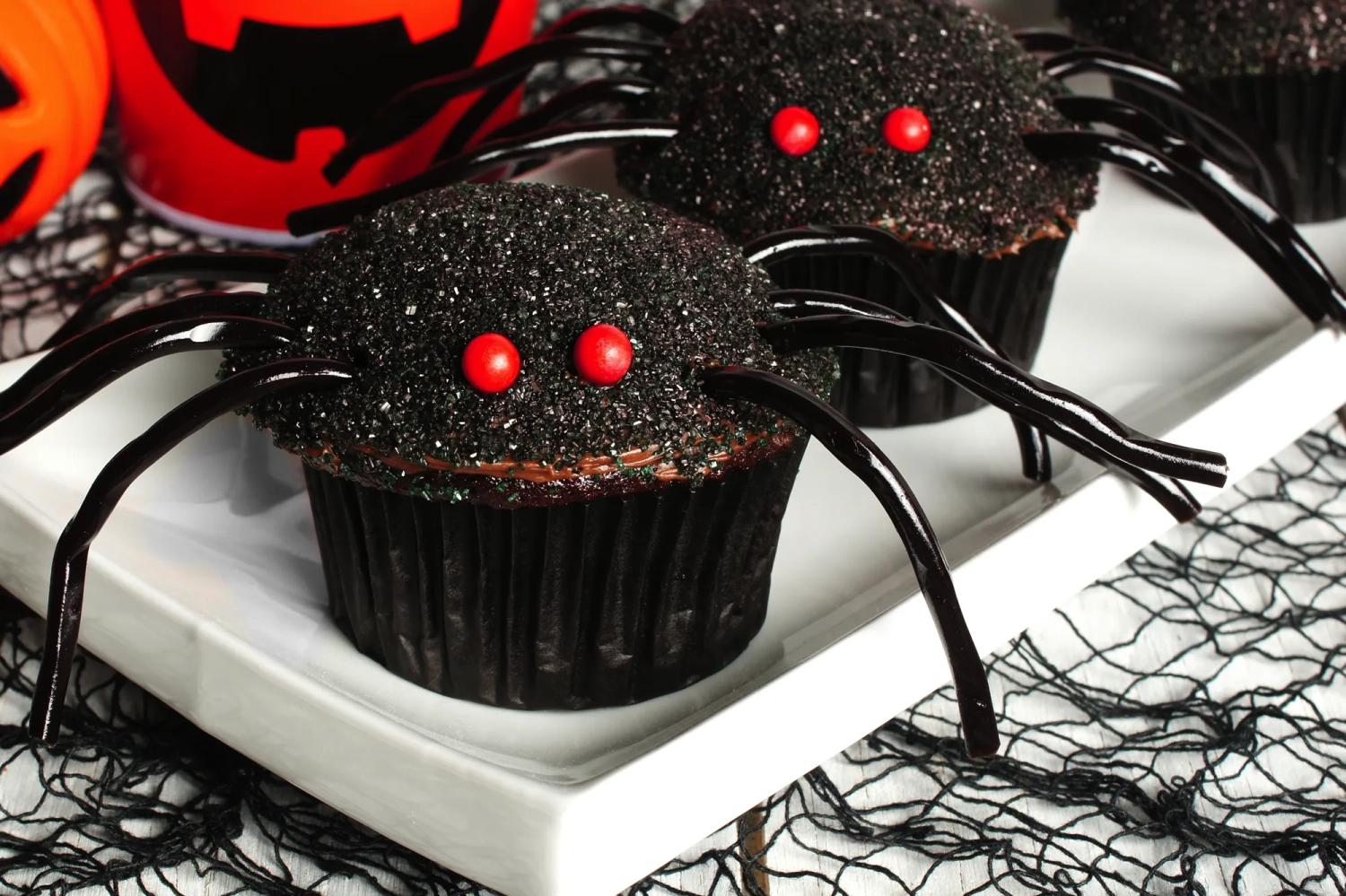 - Stick licorice legs into the top of each cupcake to form spider legs.